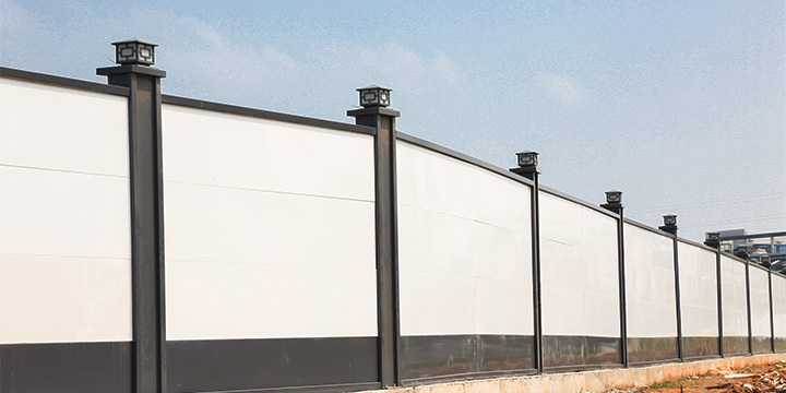 每種施工圍擋款式采用不同的現(xiàn)代美學視覺設(shè)計,立柱頂部或側(cè)面均可安裝各種造型美觀的路燈,墻體采用易保潔的圍擋專用材料,表面工地灰塵用清水沖洗即可,依然靚麗如新。